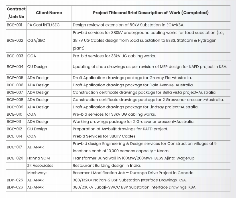 List of Completed & On-Going Projects